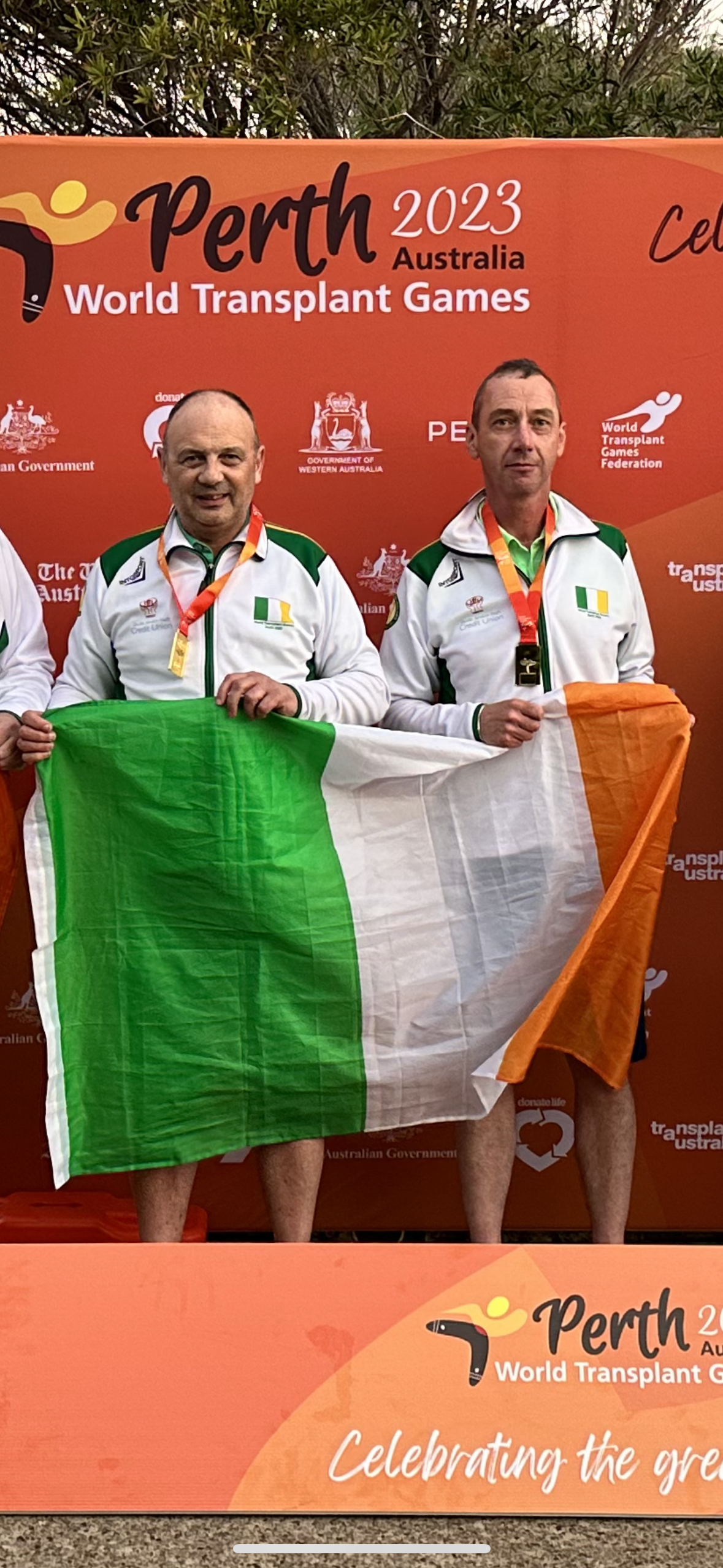 Irish transplant golfers put in an outstanding performance in Perth today at the World Transplant Games. Transplant Team Ireland seized Gold and Silver the top two positions in golf pairs while two more just missed out on bronze. Proving to be an indomitable Cork duo, golfers Pat O’Sullivan from Mallow and newcomer to the team Hugh Nolan from Doneraile, each basked in the sunshine and their Golden medal glory with their gross score of 65 on the demanding par 70 Wembley Golf course. This good news comes a day after fellow Corkonian teammate Mairead O’Mahony, from Berrings, won silver in the 5km race event. The Silver lining for Transplant Team Ireland’s golfers was when Dubliner Ron Grainger and Tony Gavigan from Longford, on form performance secured them second place position and another two medals for the team with a score of 79.